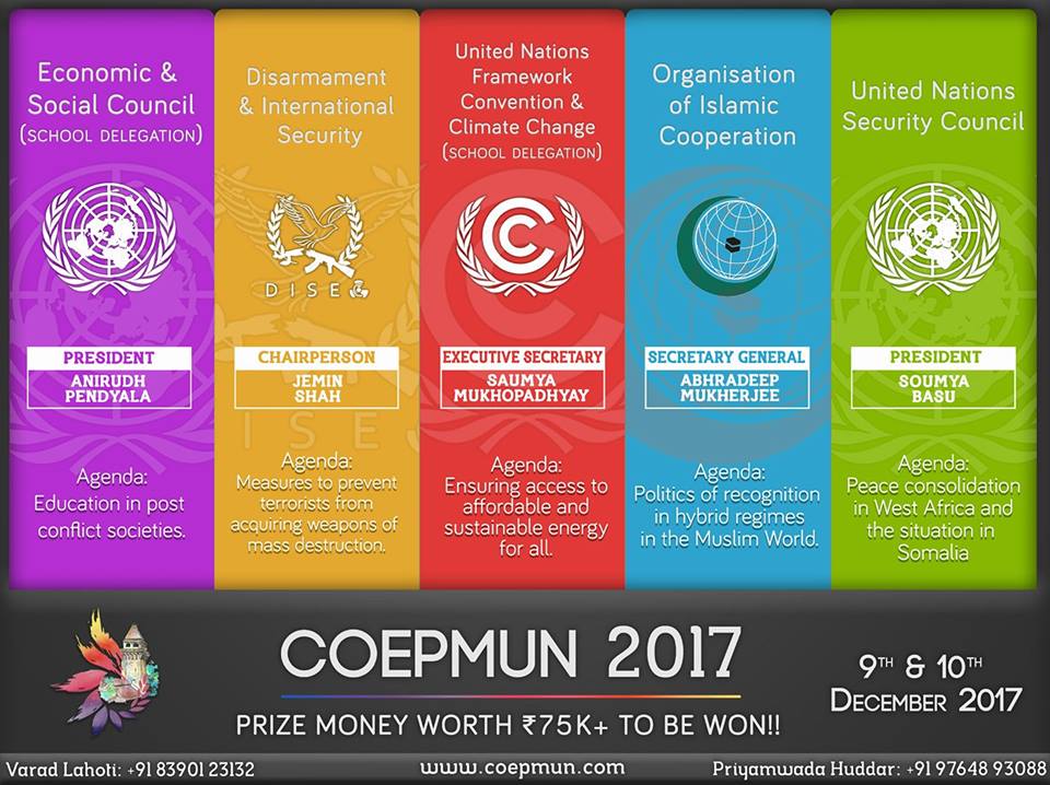 COEPMUN 2017 is going to be held on the 9th & 10th December 2017, with the last fifteen days to go register now for the superlative opportunity to represent the countries of your choice or play the pivotal role the International Press Corps at COEPMUN 2017!