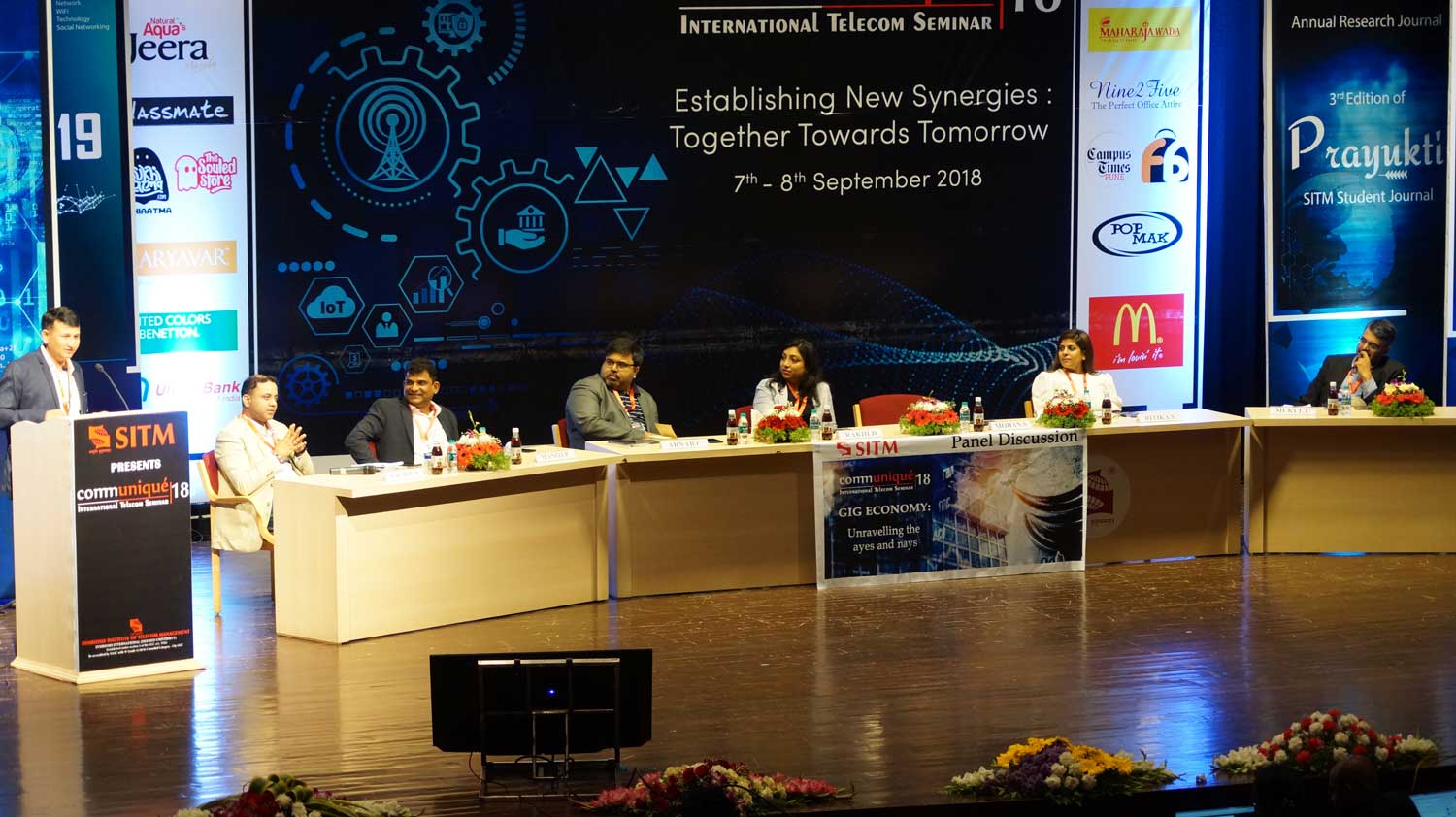 SITM’s flagship event, Communiqué 18, has reached the heights of success and unmatched valour this year. At SITM, we believe in leveraging the academic knowledge provided by the curriculum with market exposure. Each year the essence of the latest disruptions are captured and a theme is formulated encompassing all the trends of the year which impact the Telecom sector. The theme for this year being Establishing New Synergies: Together Towards Tomorrow. The 8th International Telecom Seminar witnessed and envisaged the company of stalwarts from the industry like: