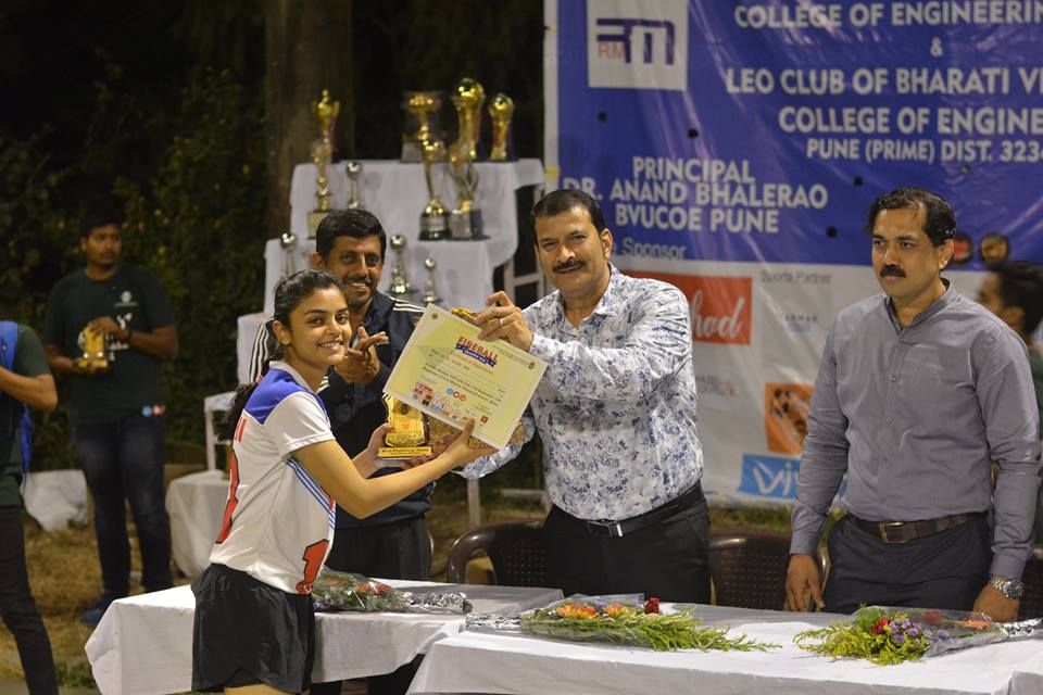 At the end of the tournament, it was time to honor the winners. The closing ceremony and the Prize Distribution Ceremony was held on the 16th of September, 2018. Each and every day of the tournament led to this very day, the conclusion of “Fireball – XIX”. It was inaugurated by Lion MJF Rajkumar Rathod (former district governor & Leo Advisor) as the Chief Guests, Dr. Netaji Jadhav (Sports Director, BVU), Mr. Ashok Jagtap (Sports Director, BVUCOE, Pune) and other Lions dignitaries were there to grace the occasion. They all boosted the morale of the players and the students.