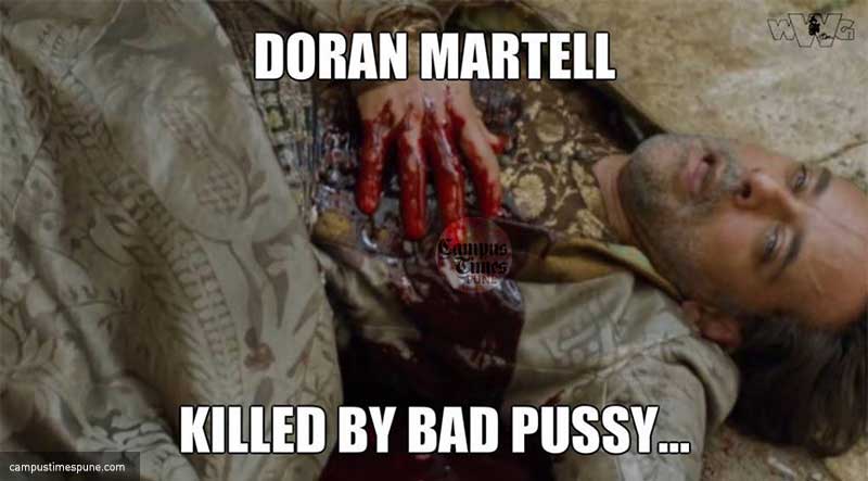 I hated the Dornish, from the bottom of my heart and wanted them dead. But you killed the wrong ones. Doran and Aero Hotah were the only Dornish characters worth watching. Ellaria and the sand snakes plotting a Coup is the worst thing ever. But now that Prince Doran is dead, I’m happy for him as he wouldn’t have to bear with yet another monologue from Obara #MuhOberynnzz