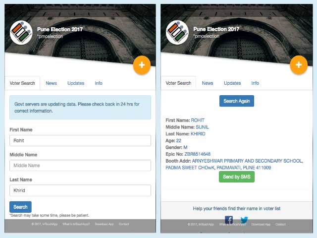 To make this process simpler, and to encourage people to vote in the upcoming Municipal Corporation Elections, InTouchApp has introduced a missed-call number: 022 3965 9494 or click here. If you’re eligible to vote and have a valid voter ID card, you can you can search your name in voter list, and receive your voter information on your phone simply by giving a missed call this number. Additionally, InTouchApp will remind you to vote on election day, so you can plan your schedule ahead of time.